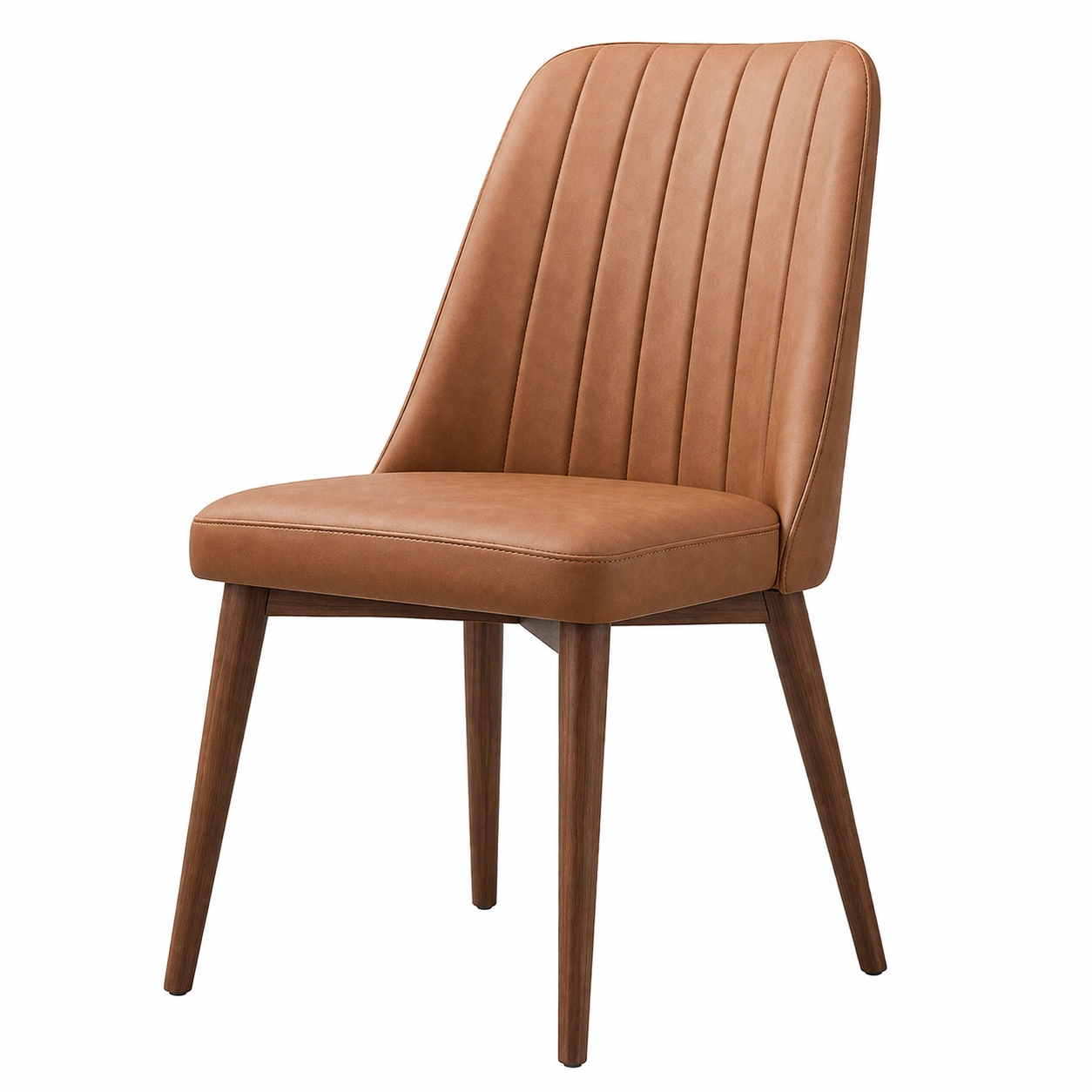 Sillas de comedor de madera tapizadas en cuero sintético marrón