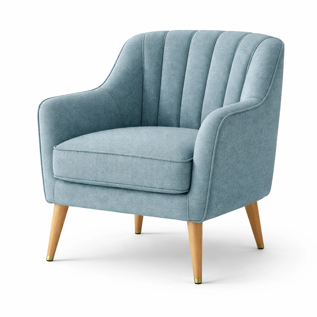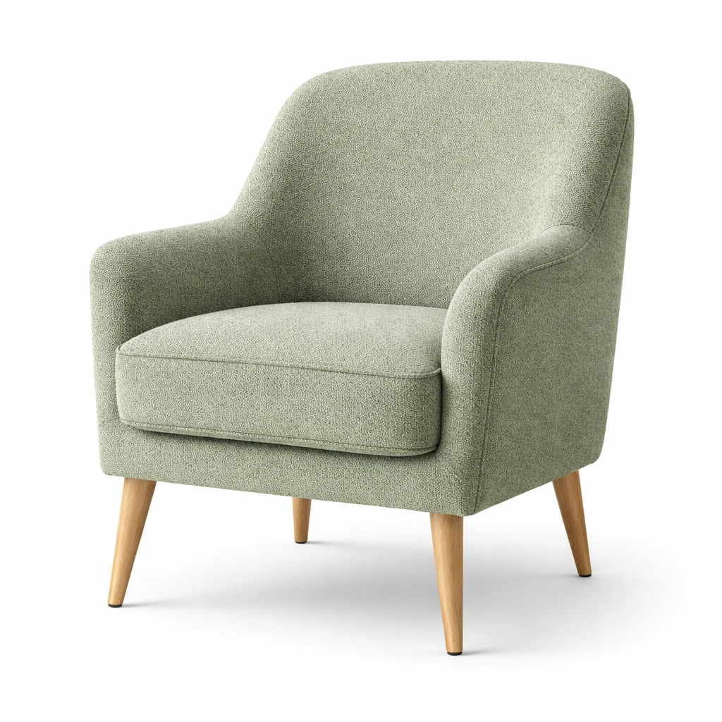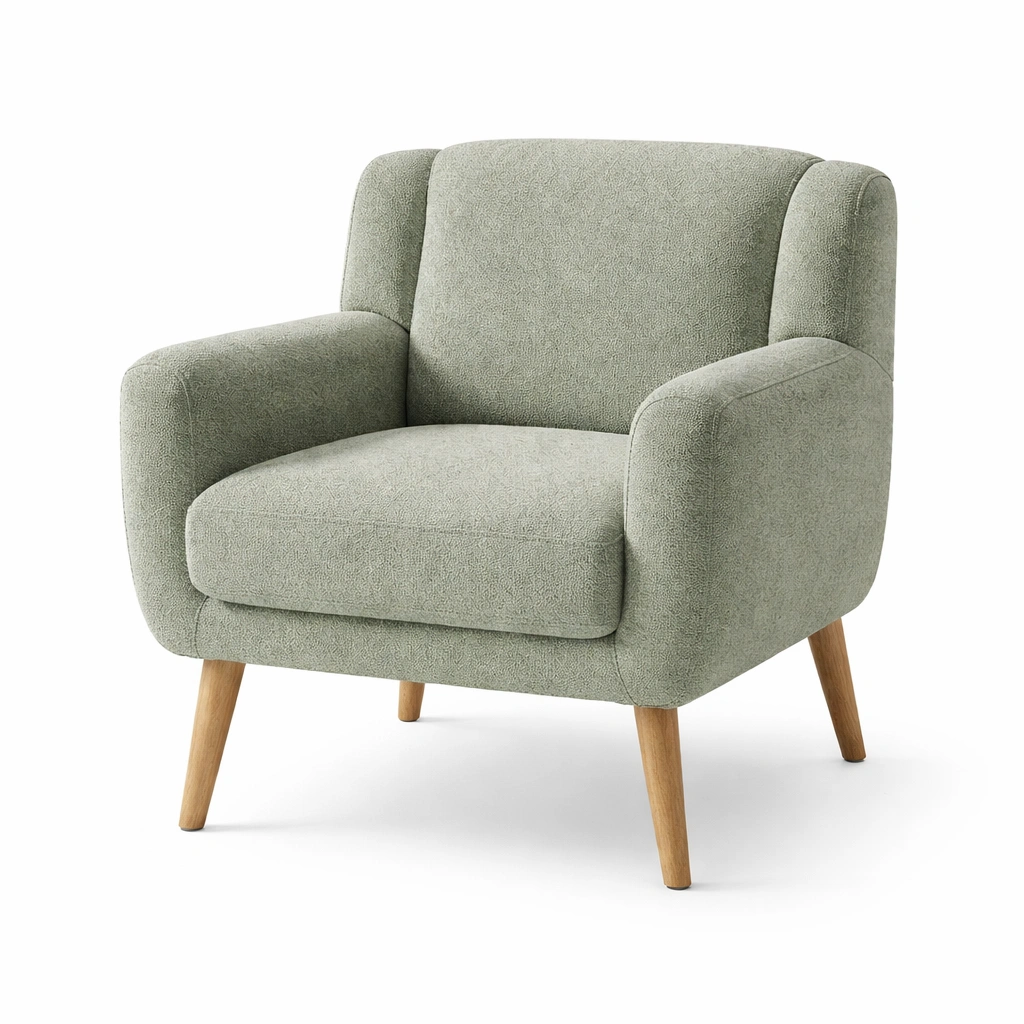 Sillón de tela verde con patas de madera 75x80x85 cm